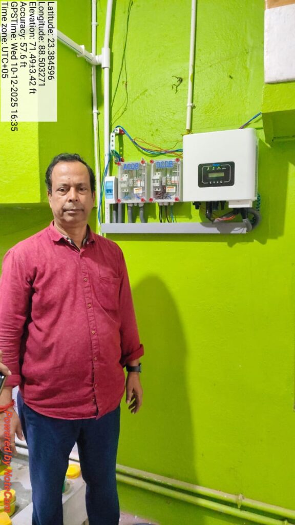 Latest Works Client name: Mr. Mrityunjay Biswas April 11, 2026 admin No Comments Location: Bagdah, MalidahaProject: 5kw DCR With Govt. Subsidy